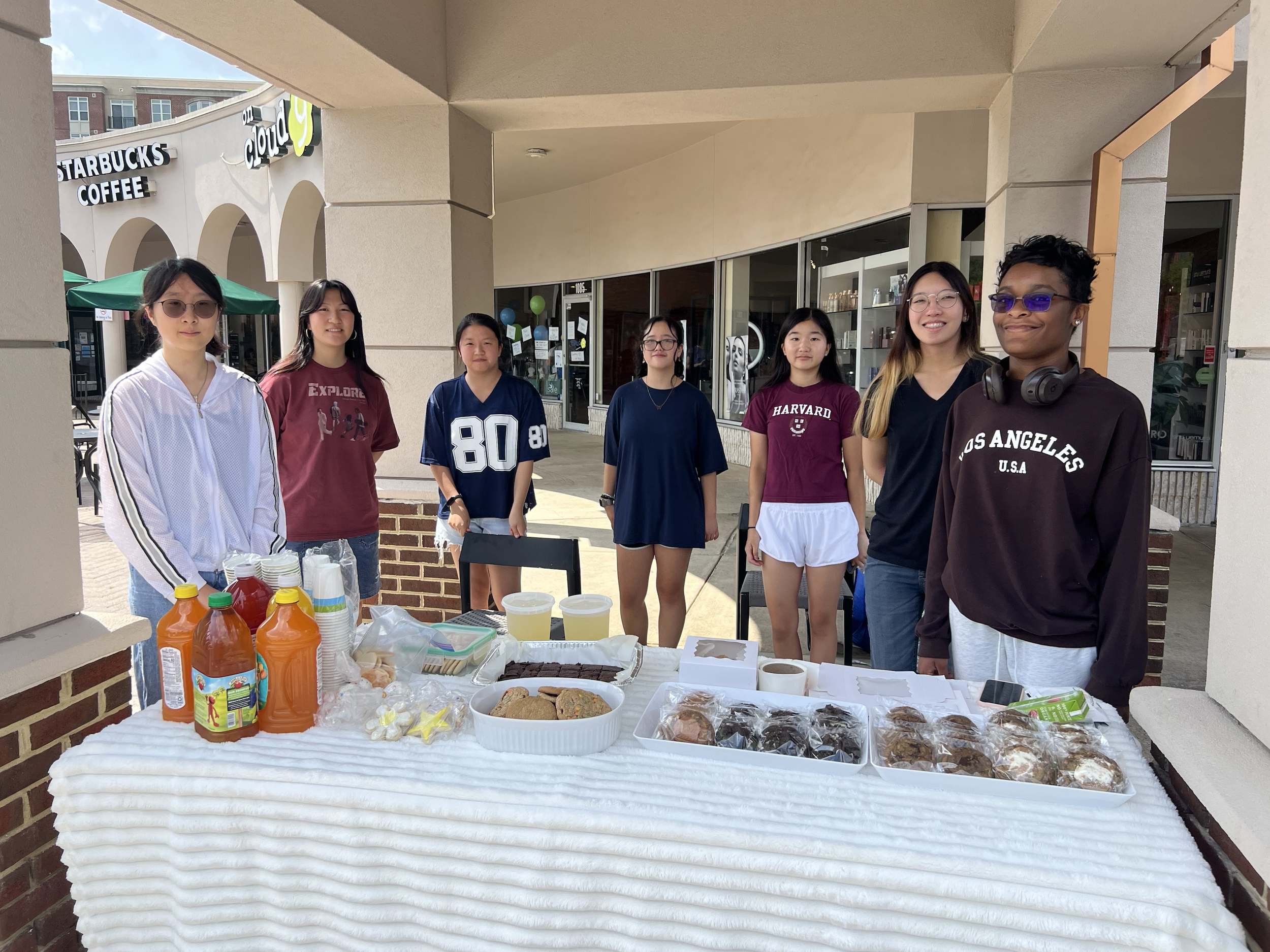 From 11am-5pm on July 12th at Potomac Village, volunteers Sonia Lin, Evelyn Wang, Beurui Zhang, Eva Song, Annie Luo, Isabella Silvestre, Emma Hahn, and Ify Olisemeka sold Biscoff cookies, Cookies n Cream cookies, chocolate chip cookies, MnM cookies, fun-shaped sugar cookies (such as butterflies and stars!), cake pops, iced sodas, and juices.